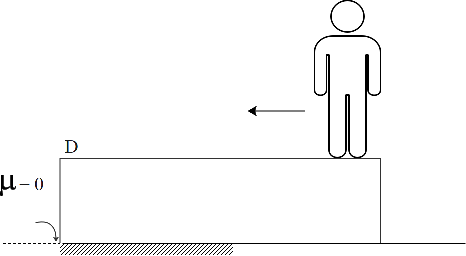 Since, the system is frictionless, i.e., no external force acts on the system in the horizontal direction, the net velocity of the centre of mass of that system remains constant i.e., equal to 0.