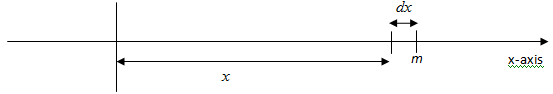 Given a test mass $m$ on the x-axis, the work done $W$ to move it a distance $dx$ in the given gravitational field will be: