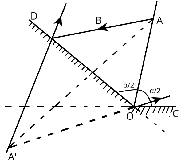 One will notice this if \[\angle A'OD + \angle AOD + \angle AOC = 3\dfrac{\alpha }{2} > 180^\circ \]