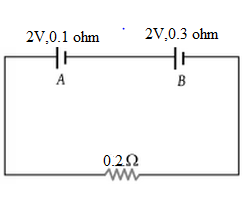 Given: Resistances are \[0.1\Omega \], \[0.3\Omega \] and \[0.2\Omega \]. Voltages are \[2V\] each.