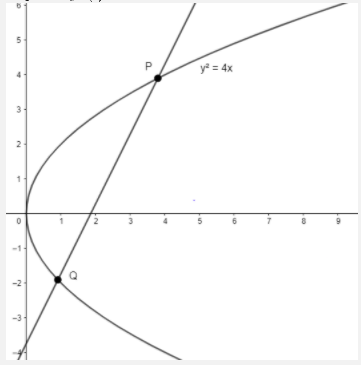 We have a parabola \[{{y}^{2}}=4x\].We have to find the locus of point on a chord of slope 2 which divides the chord internally in the ratio 1:2.