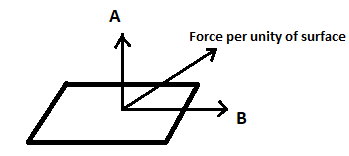 In the above diagram, A represents normal stress acting on the surface whereas B represents shearing stress acting on the surface parallel to the cross-sectional area.