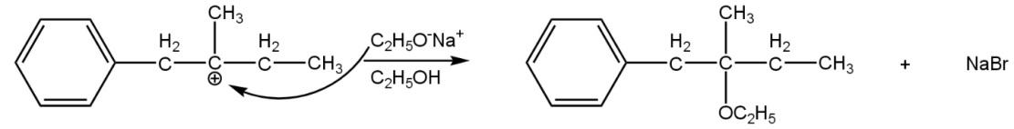 The resultant compound is unstable because it is a charge compound and not neutral compound and it tends to get neutral by the attack of another nucleophile. Sodium ethoxide (\[{{C}_{2}}{{H}_{5}}ONa\]) and ethanol (\[{{C}_{2}}{{H}_{5}}OH\]) are strong nucleophilic reagents (electron-rich), attack on it and side product will be\[NaBr\](attacked by sodium ethoxide) or\[HBr\] (attack by ethanol) such as