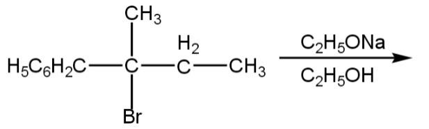 Hint: Given compound name is \[\left( 2-bromo-2-methyl\text{ }butyl \right)\] benzene and sodium ethoxide (\[{{C}_{2}}{{H}_{5}}ONa\]) which acts as a strong nucleophile reagent and also a strong base and thus, it tend to donate electron or seek cation. The reaction between both the compounds is followed by a substitution reaction (one nucleophile will substitute for another nucleophile).