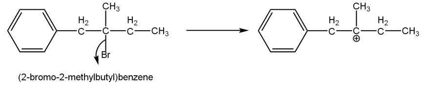 In a given compound \[\left( 2-bromo-2-methyl\text{ }butyl \right)\], bromine’s electronegativity is quite high as compared to carbon to which it is bonded. Due to its high electronegativity, it tends to attract a bond pair of electrons towards itself and become negatively charged. This results in creation of three-degree carbonation such as