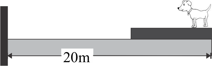 The mass of the boat is $40kg$ and friction between the boat and water surface is negligible. If the mass of a dog standing on a flat $10m$ long boat is $10kg$ such that it is $20m$ from the shore and walks $8m$ towards the shore on the boat and then stops. Then find the distance of the dog from the shore.