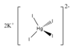 -From the above equation we can say that four moles of potassium iodide reacts with Mercuric iodide and forms one mole of\[{{K}_{2}}[Hg{{I}_{4}}]\](potassium mercuric iodide).