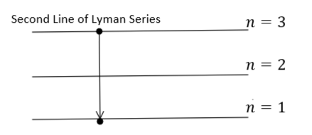 It is given that the photon radiated from hydrogen $(Z = 1)$ corresponding to the second line of the Lyman series. Therefore, the transition will be from ${n_1} = 3$ to ${n_2} = 1$ as shown in the figure: