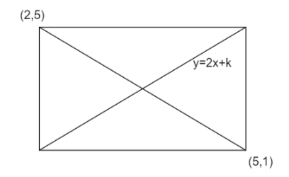 Hints First draw the rectangle with the stated information. Then obtain the mid-point of (2, 5) and (5, 1). The given line passes through the mid-point so, substitute the values of x and y as the obtained mid-point and obtain the value of k.