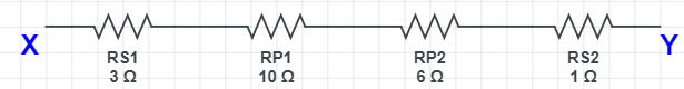 The total resistance across X and Y is \[{R_S} = 20\]