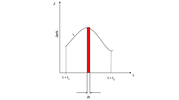 Nw, the figure given above shows the graph of jerk vs. time. Hence, now the area (A) under the curve is given as,