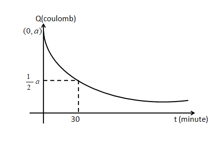From the graph, it is shown that, at $t = 30,{\text{ }}Q = \dfrac{a}{2}$