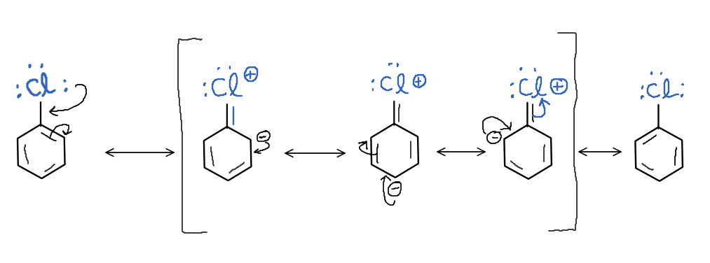 Chlorobenzene has a very low reactivity towards all nucleophilic substitution reactions because the chlorine atom cannot leave the molecule easily. This is because the carbon-chlorine bond has a partial double-bond character due to resonance making it difficult to break.