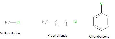 Image: Structures of methyl chloride, propyl chloride and chlorobenzene