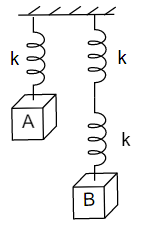 Now for mass B, as the mass is suspended by a series combination of two springs, length of the spring combination will be doubled and the effective constant will be \[\dfrac{k}{2}\].