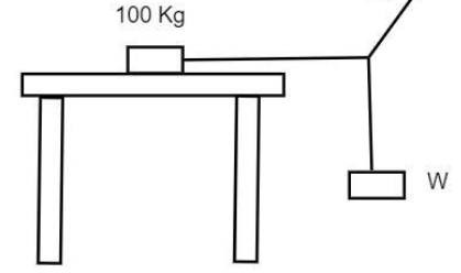 The system shown in the figure is in equilibrium. The maximum value of $W$ . So that the maximum value of $W$ . So that the maximum value of static frictional force on $100\,Kg$ body is $450\,N$ , will be:-