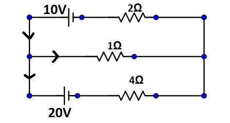 Thus there are two loops formed. Let us call the lower loop, the one with source of 20V as Loop 1 and the loop with the source 10V as Loop 2.