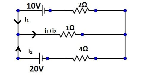 Thus,${i_1}$ is the current generated by the source of 10V and ${i_2}$ is the current generated by the 20V source.