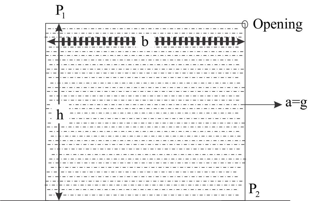 According to the question, it is given that, density of liquid is $\rho $ and the acceleration is $a = g$