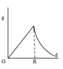 Note: Students should observe carefully that the acceleration due to gravity varies with the different conditions/distance from the centre of the earth. Inside the earth surface it varies linearly, on the surface of earth it is constant and above the surface of earth it varies according to hyperbola equation.