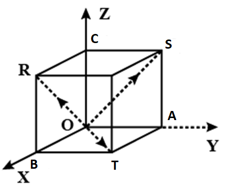 Here, we can say that OR, OS, and OT are the diagonals of a cube having respective magnitudes of vectors a, 2a, and 3a respectively.