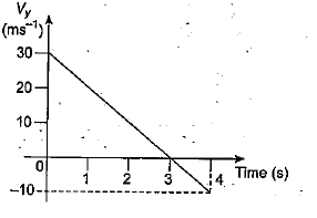 The velocity-time graph for the vertical component of the velocity of a body thrown upwards from the ground and landing on the roof of a building is given in the figure. The height of the building is: