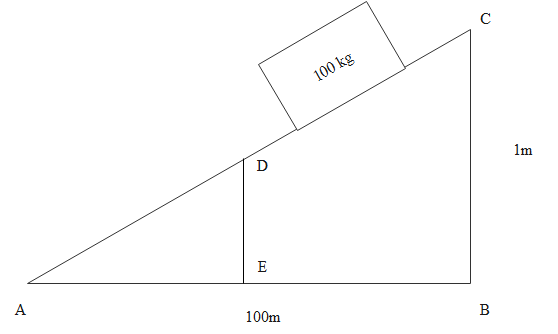 The work done in dragging a stone of mass $100 \mathrm{kg}$ up an inclined plane 1 in 100 through a distance of $10 \mathrm{m}$ is: