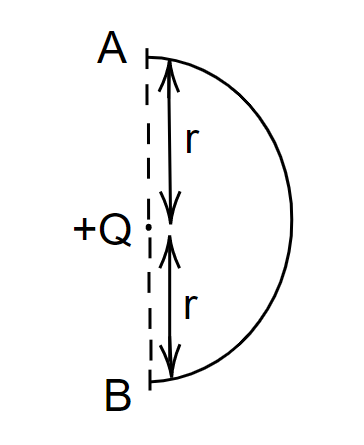 The work done in slowly moving an electron of charge e and mass m from A to B along a semi-circular path (as shown in the figure) in a vertical plane in the field of charge Q is