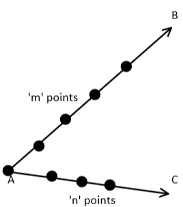 There are m points on line AB and n points on line AC excluding point A in both the lines (given).