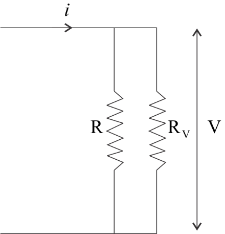 $V = i\dfrac{{R{R_v}}}{{R + {R_v}}} \cdots \left( 2 \right)$
