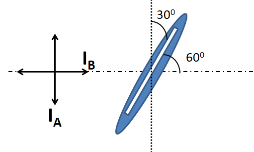 $ {I_{{A}}}' = {I_{{A}}}{\cos ^2}{30^ \circ } $ ………..(2)