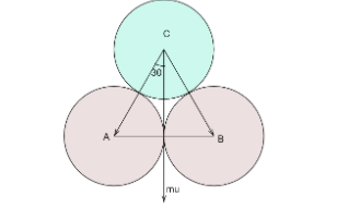 Note The angle $\theta $ is found using the shape of formation created by the three balls. Since they are of the same size, when the ball C hits symmetrically, the centers of all three balls form an equilateral triangle. The vertical line, along which the initial velocity of Ball C is, bisects one of the vertices of the triangle, thus this angle is equal to $30^\circ $.