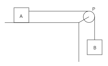 Two blocks $A$ and $B$ are arranged as shown in the figure. The mass of the block $A$ is $10\,kg$. The coefficient of friction between the block $A$ and the horizontal plane is $0.2$. The minimum mass of block $B$ to start motion will be: