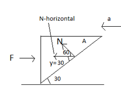 $ Ncos60^\circ - F = m \times \dfrac{F}{{2m}} $