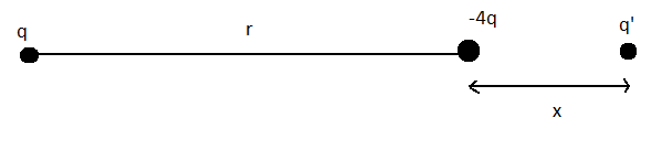 Now, the third charge is $q'$and it is placed at a distance $x$ from the charge \[ - 4q\] .