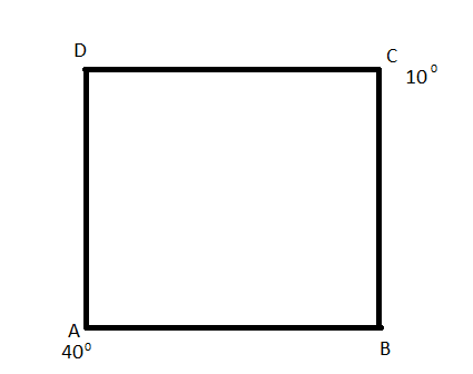 Two diagonally opposite corners of a square loop made of four thin rods of the same material, same dimensions are at temperatures $40^\circ$ and $10^\circ$. If the only heat conduction takes place then the temperature difference between the two other corners will be