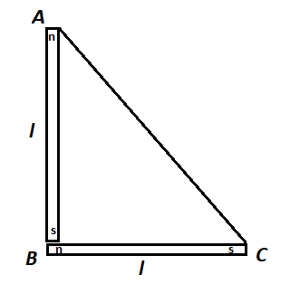 \[AC = \sqrt {{l^2} + {l^2}} \]
