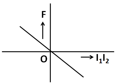 Now, according to the question, the attractive force is taken as negative, while the repulsive force is taken as positive. As stated above, when the product ${I_1}{I_2}$ is positive, then the force is attractive. But when the product ${I_1}{I_2}$ is negative, then the force is repulsive. So the sign of the force is opposite to the sign of the product ${I_1}{I_2}$.