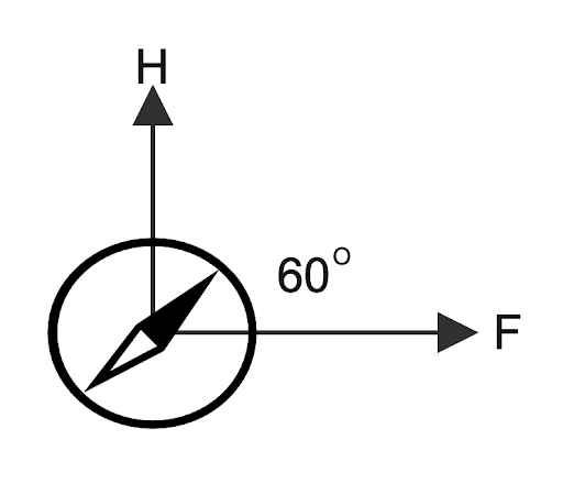 Two normal uniform magnetic field contain a magnetic needle making an angle ${60^ \circ }$ with F. Then the ratio of $\dfrac{F}{H}$ is ?