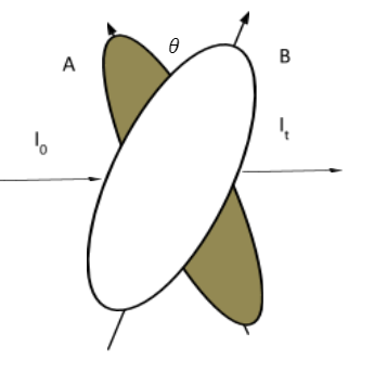 $I_t$ = $I_0$ ${\cos ^2}\theta $ ($I_t$ and $I_0$ are the intensities of the transmitted and incident light, $\theta $)