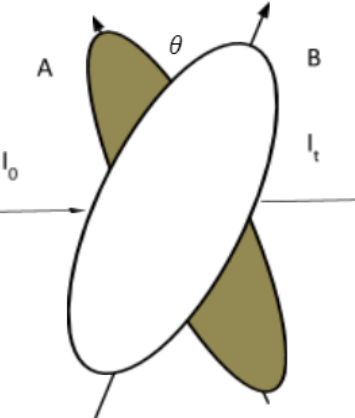 ($\theta $is the angle created between the two Polaroid, ${I_t},{I_0}$are the intensities of the incident and transmitted light, respectively.)