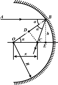 Let \[{\rm{ABC}}\] be the ray incident at a distance \[{\rm{BE}}\] from the mirror axis, and let \[{\rm{O}}\] be the centre of the mirror's spherical surface.