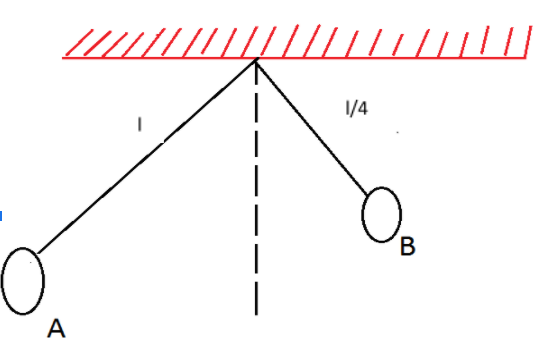 Two simple pendulums A and B having lengths $l$ and $\dfrac{l}{4}$ respectively, are released from the position as shown in figure. Calculate the time( in seconds) after which the two strings become parallel for the first time .