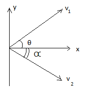 u = {v_1} \cos \theta + {v_2} \cos \phi ...........\left( 1 \right) \\