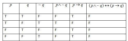 $(p\wedge \sim q)\leftrightarrow (p\to q)$