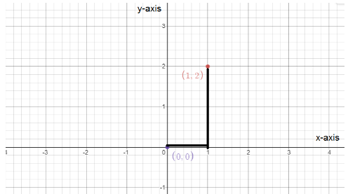 To plot coordinates $\left( {1,2} \right)$ on the Cartesian plane, from the origin $\left( {0,0} \right)$ go to its right side horizontally and mark 1 unit on the x-axis, and form 1 go upward up-to 2 units parallel to the y-axis.
