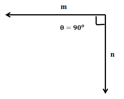 Note: The vectors \[m\] and \[n\] are said to be orthogonal if and only if the angle between them is \[{90^o}\]. That means they are perpendicular to each other. Also, it is denoted by \[m \bot n\].