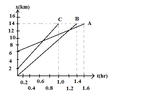 Slope of C $ = \dfrac{{14 - 2}}{{1.0 - 0}} = \dfrac{{12}}{{1.0}} = 12km/hr$