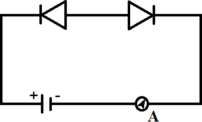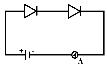 We have to find which circuit will not show current in the ammeter for the given options. We can see that the circuit contains forward and reverse bias. Current always flows from forward bias, and no current flows from reverse bias. So, from bias we will identify that from which circuit current does not flow.