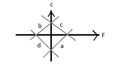 Hint: The following diagram represents a graph between Celsius on the $y-axis$ and Fahrenheit on the $x-axis$. The curves $a,b,c,d$ are the curves on the graph out of which one shows the relation between Celsius and Fahrenheit. We will first write down the mathematical equation for the relation. Then make Celsius the subject of the equation and then compare it with the equation of a straight line. Then we find the slope using those two equations and see which slopes in the diagram match it.